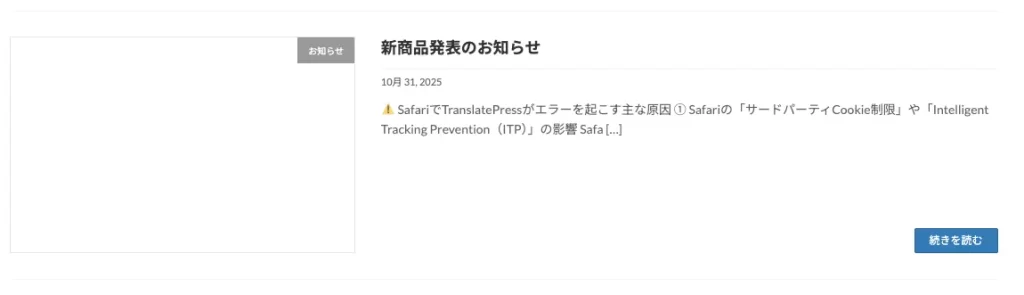 特に「i0.wp.com」が付与されている場合、画像が外部ドメインとして扱われるため、テーマ側で正しく画像を認識できず、サムネイルが表示されない不具合が発生します。