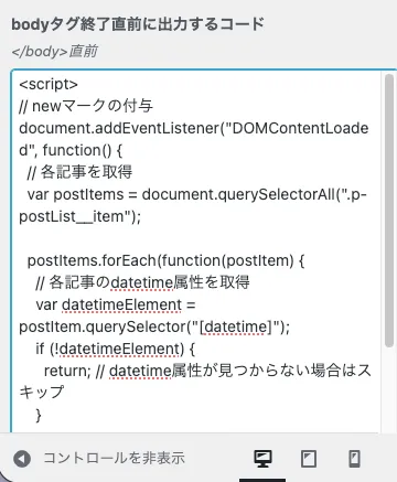 }5日間「NEW」マークを記事一覧に表示する方法②